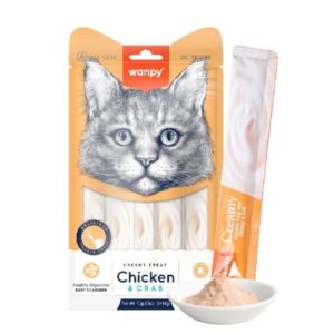 Wanpy Creamy Lickable Friandises pour chat – Poulet et Crabe, pack 5 x 14g