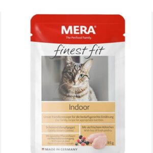 Mera Fitness Fit Pochon Indoor 85g – Pâtée humide sans gluten pour chats d’intérieur, favorise digestion saine et prévention des boules de poils
